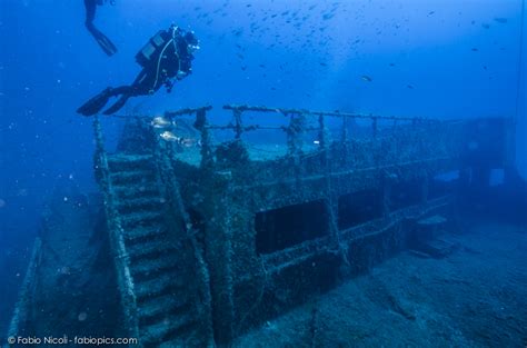 metri circa a babordo, ingresso nell’enorme squarcio della esplosione della fiancata, con le torce da 70 Watt nel buio totale della pancia della Haven, risalita seguendo le scale interne della sala macchine e uscita in avvitamento attraverso il boccaporto superiore di coperta, che ci riportava improvvisamente alla luce dei 54 metri; oppure caduta libera fino alla sala macchine, a cui si poteva anche accedere da una balconata di poppa. Emozioni di paura, mai. Molta attenzione, calcolo dei piani di contingenza, delle miscele adatte, ognuno con le sue tappe decompressive precalcolate: insomma non eravamo li per strafare, ma ci piaceva programmare nuovi percorsi e goderci le nostre piccole imprese, su cui brindare scherzando, davanti ad una birra, con tedeschi, francesi, austriaci, mezza Europa insomma. Alcuni di questi “percorsi segreti”, tutti nostri, li “regalavamo” ai clienti più affezionati (riconoscentissimi!), conoscendo naturalmente le loro reali capacità fisiche, tecniche ed emotive. Per anni è andata avanti così, in estate, in inverno (noi eravamo operativi tutto l’anno, mare permettendo). La vita come guide era spensierata, ma più o meno simile a quella dei piloti di caccia: sai che rischi (quando non porti i clienti), ma sono rischi calcolati e fanno parte del “mestiere”. Ilarità e spirito di gruppo si alternavano a solitarie e serie meditazioni sul tipo si programmazione e di parametri della successiva immersione. Ma vengo al punto.